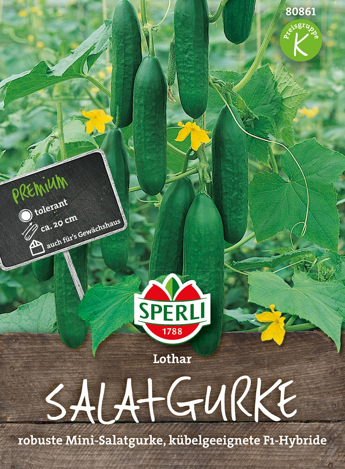 Lotharist eine robuste Minigurke mit ca. 20 cm langen, kernlosen und dunkelgrünen Früchten. Die Salatgurke kann roh, als Einzelfrucht oder in verschiedenen Salaten verwendet werden. Diese Hybrid – Sorte hat eine mäßige Toleranz gegen Falschen Mehltau und den Echten Mehltau (Pilzerkrankungen). Lotharist bestens geeignet für den Anbau im Gewächshaus, Frühbeetkasten und sogar im Freilandbeet.